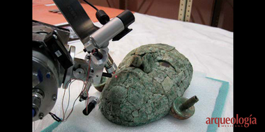 La composición de las teselas de la máscara de la Reina Roja abre la oportunidad de conocer la procedencia de la malaquita con que está hecha,